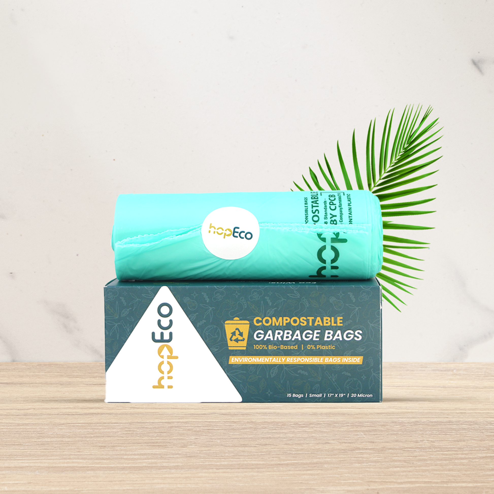 Make the sustainable switch with hopEco Compostable Garbage Bags, designed to replace traditional plastic trash bags while keeping your space clean and green.