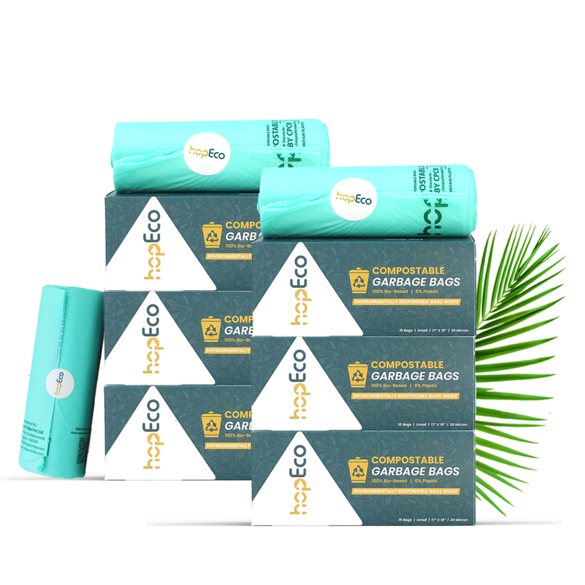 Make the sustainable switch with hopEco Compostable Garbage Bags, designed to replace traditional plastic trash bags while keeping your space clean and green.